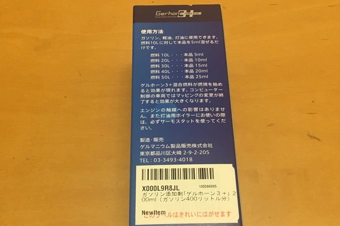 新品購入コールが起こる中、ついに気になりまくっていた燃料添加剤「ゲルホーン3+」を買ってしまいました。